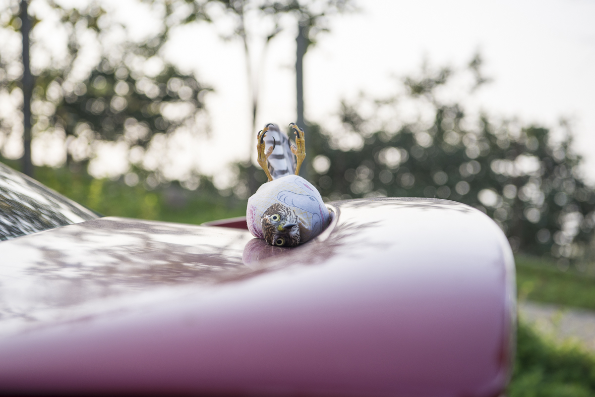 In the garage behind, Gela keeps several red-backed skrike- the small bird most popularly used as bait to draw the raptors in. They are tied to a stick which is then waved above the hide to capture the attention of the raptors. Small patches or disks are glued over their eyes which stops the bird from seeing an approaching predator and triggering unwanted escape behaviour.